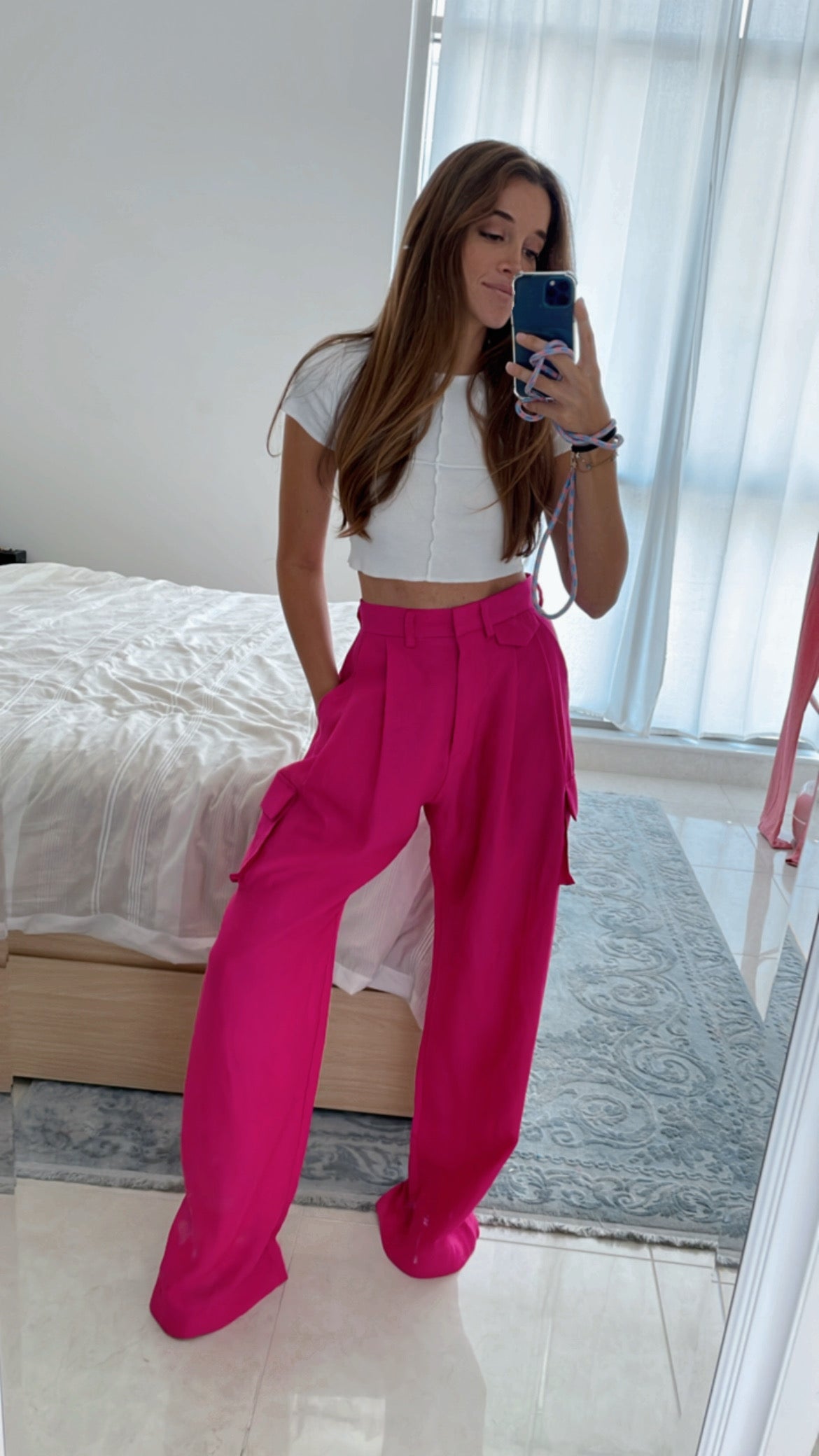 The coolest pants of the season, you will want to live in these pants this summer, with a flattering palazzo shape and box pleats, with pocket details that are a signature this summer. Size up for a looser lower waist fit