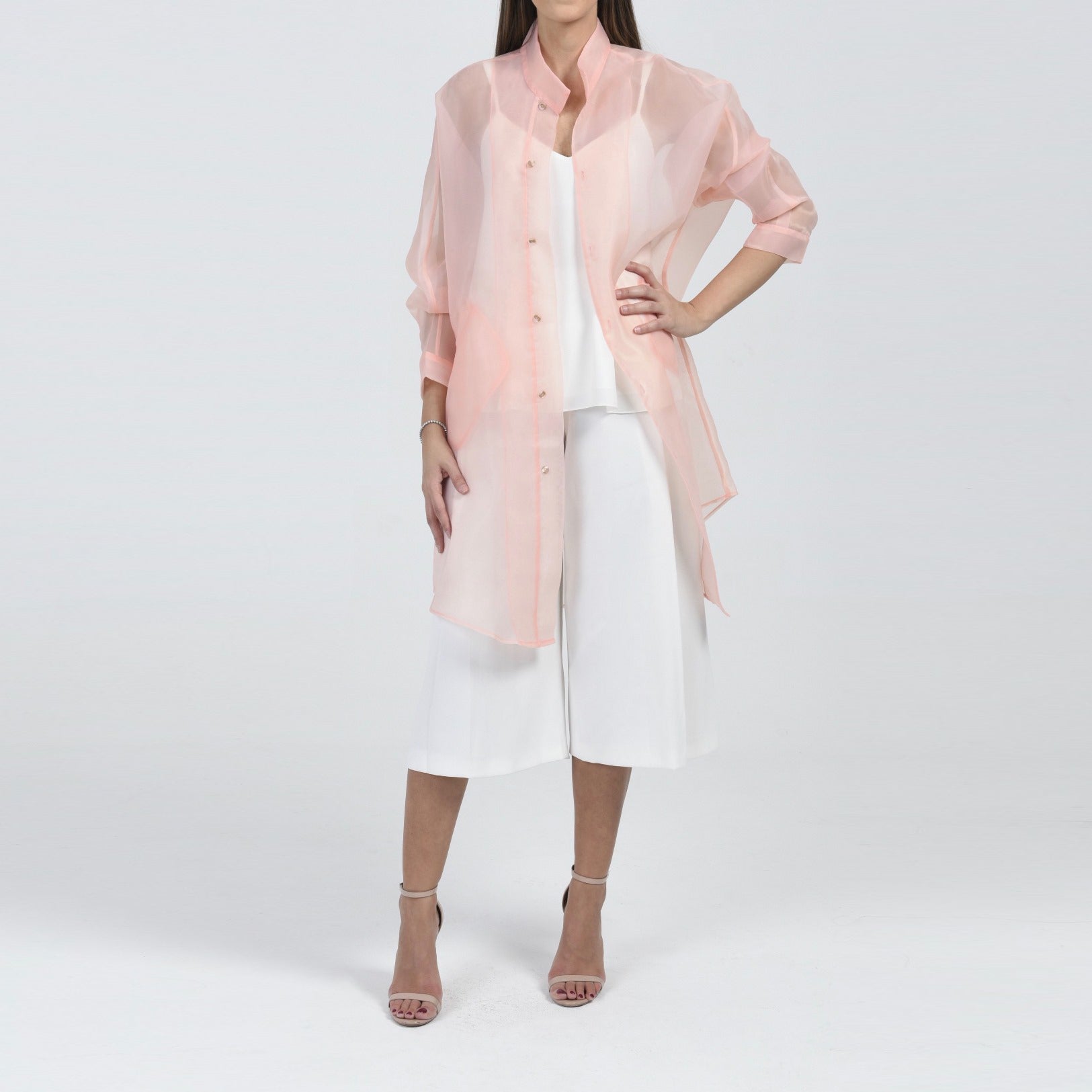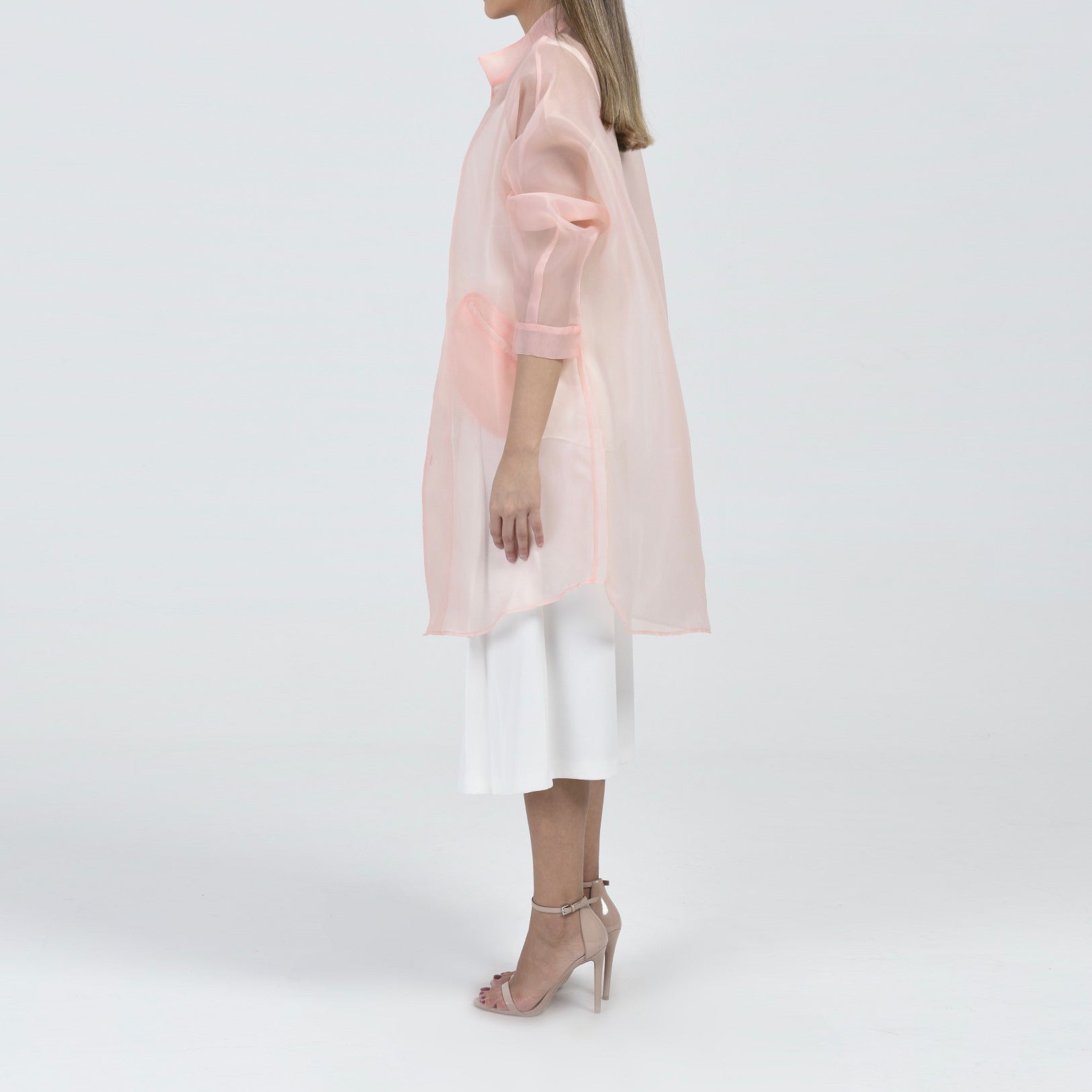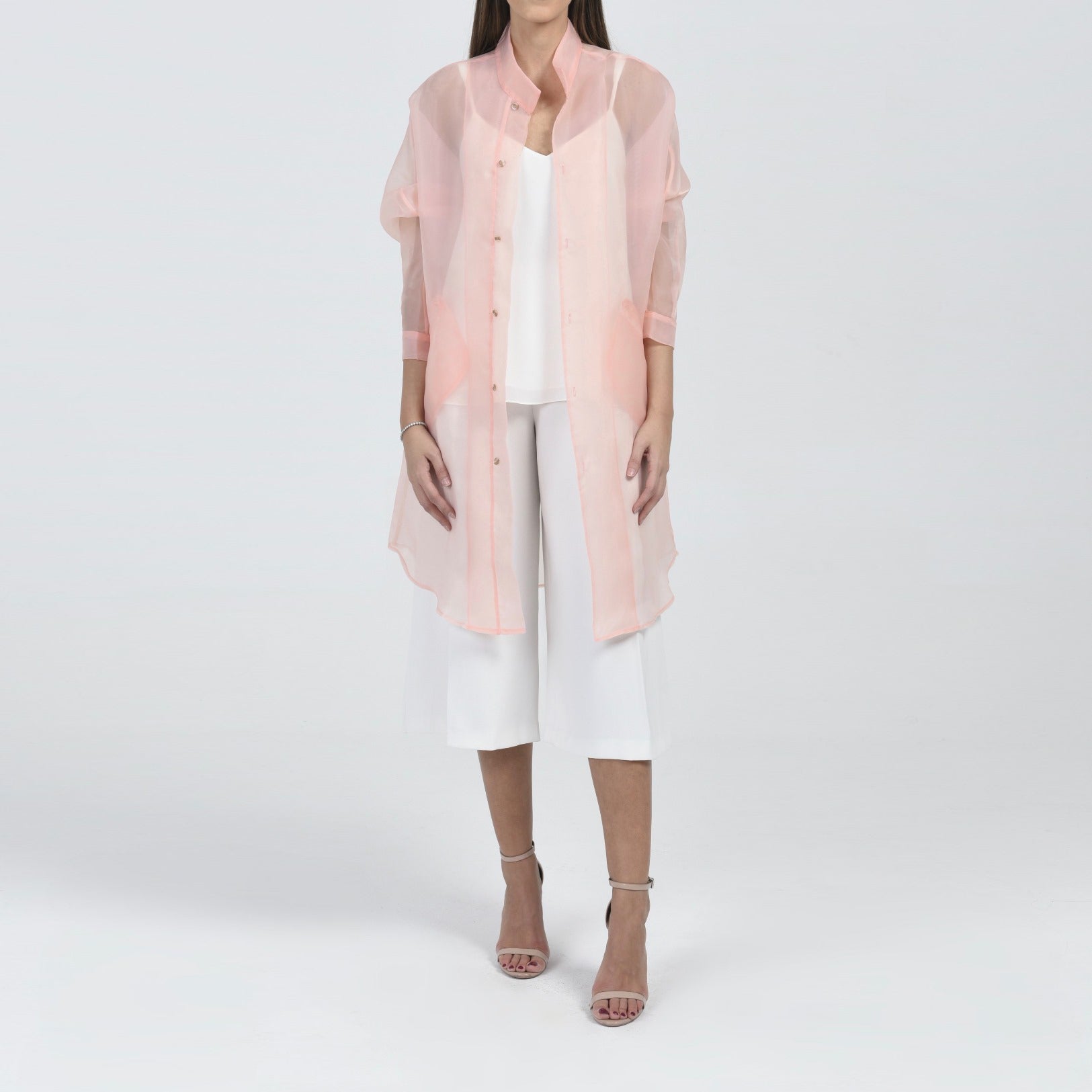 This seasons bestseller, this powder pink organza coat is a must have in every wardrobe. Through it on any outfit to instantly take the look to the next level.